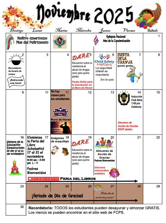 November 2025 Calendar/Calendario de noviembre de 2025